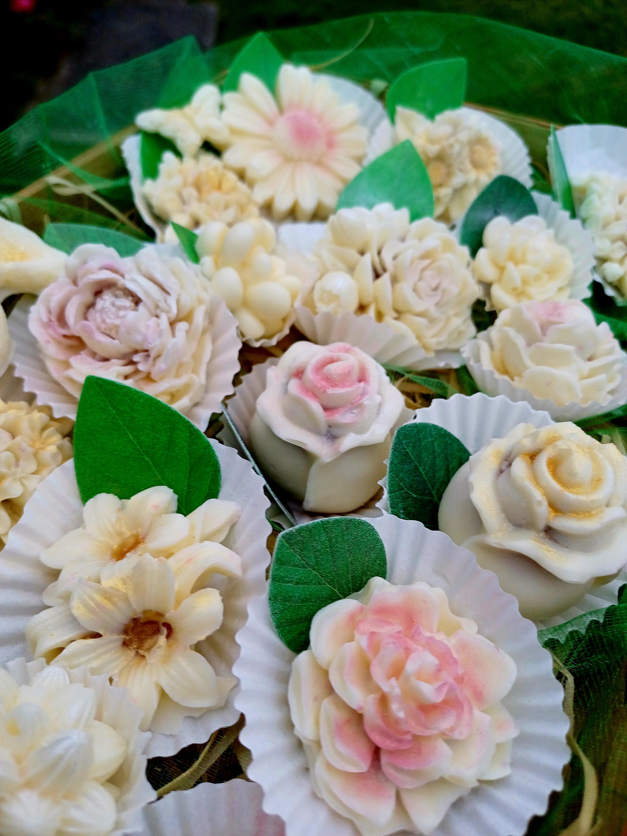 Crafted with silky-smooth white chocolate and sculpted into stunning roses and floral delights, these edible works of art are not just beautiful. They are irresistibly delicious. Each petal hides a secret: a filling inspired by Bounty, a creamy coconut center wrapped in rich chocolate.