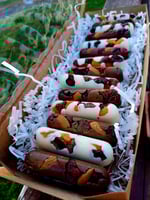 These can be made either with white or milk chocolate. Sold in pairs and in boxes.